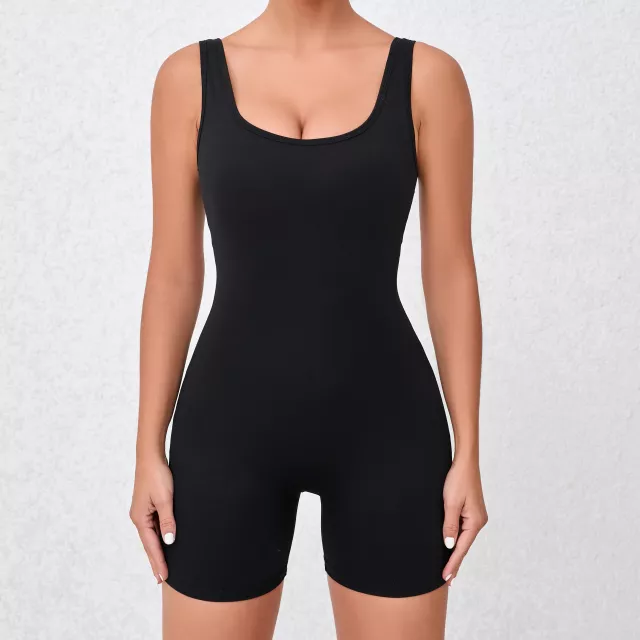 This body-con jumpsuit features a flattering solid-color design, breathable knit construction, a built-in cup insert for gentle shaping, and a stretchy broadcloth fabric that fits true to size. With a sleek backless silhouette and seamless finish, it combines style with performance, making it a must-have for women who love both comfort and elegance in their activewear.