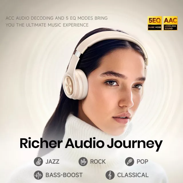 Experience audio the way it was meant to be heard. These wireless over-ear headphones bring together powerful 40 mm drivers, customizable 5EQ sound modes, and ultra-stable Bluetooth 5.4 to give you rich, high-fidelity listening anywhere you go. Whether you’re relaxing with your favorite playlist, taking calls on the move, or diving into an intense gaming session, these headphones elevate every moment with clarity, depth, and smooth performance.